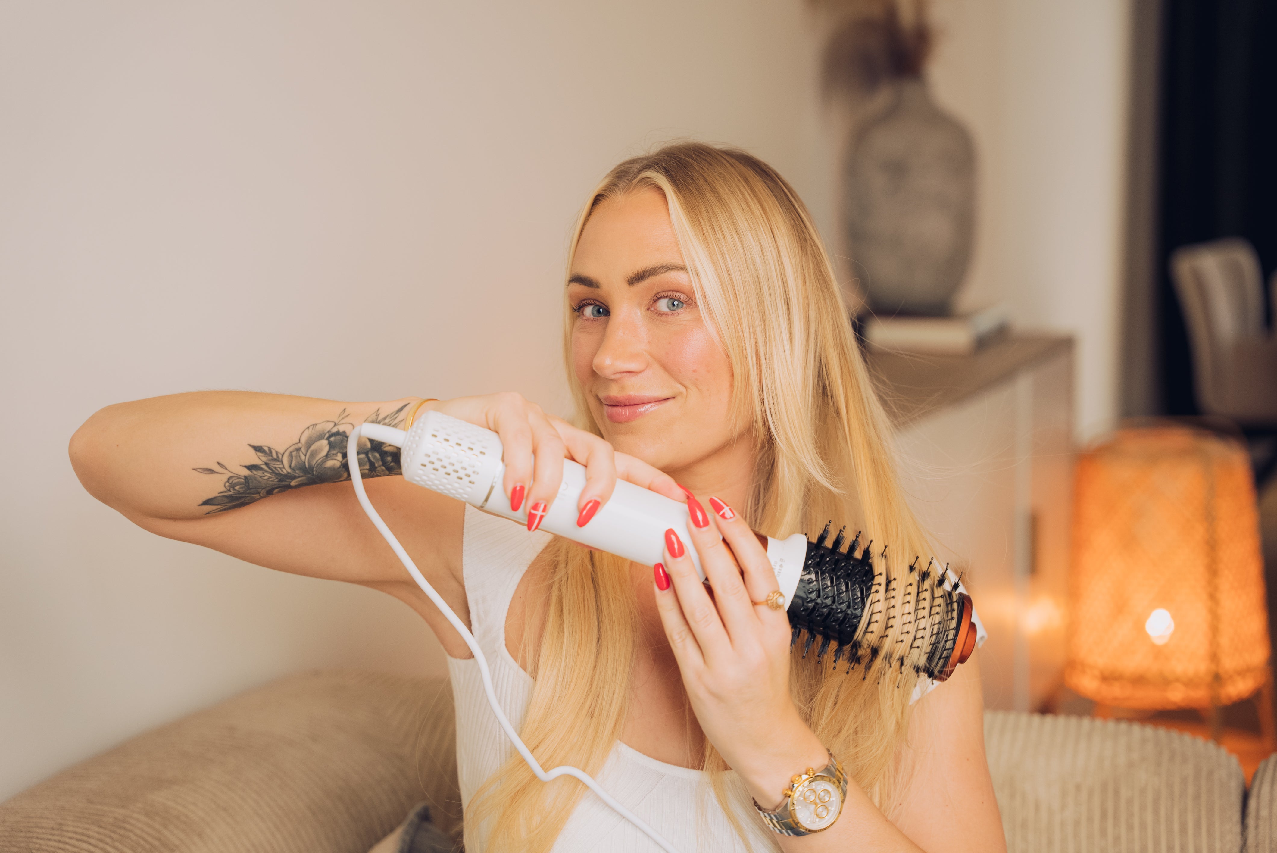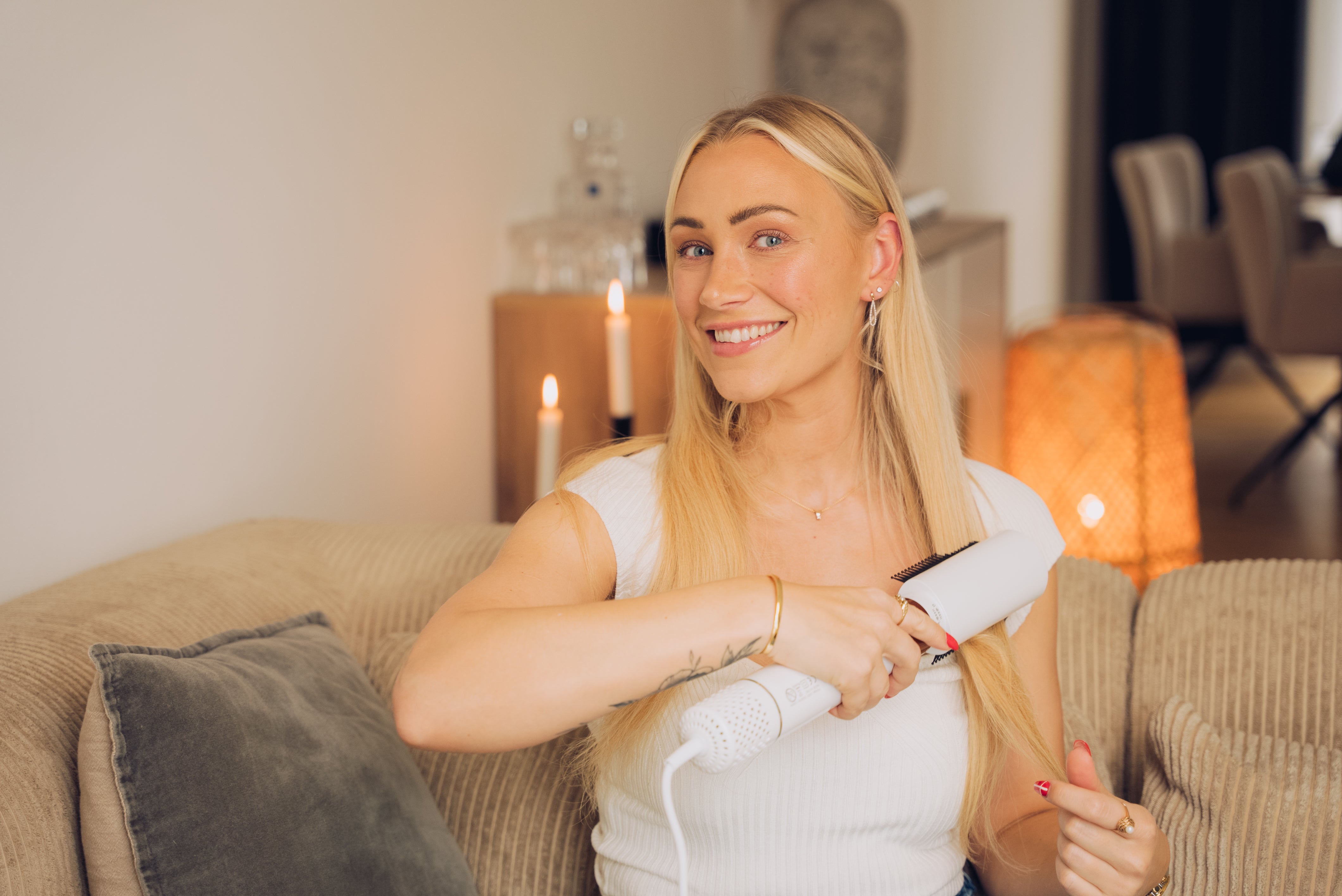 Comforth AirPro™ - 6-i-1 Hårtørrer leveres med seks påsættelige hoveder, der gør det nemt at opnå forskellige stylingresultater. Den bløde udglattende børste glatter håret og modvirker krus, mens voluminiseringsbørsten giver løft og bløde krøller. Det udglattende børstehoved er perfekt til længere og kraftigere hår, og med krølletønden kan du skabe smukke krøller hurtigt. Blowout-børsten skaber et fyldigt salon-look, og til sidst sikrer føntørreren en hurtig tørring, så du kan style dit hår, mens det stadig er let fugtigt. Læs eventuelt vores blogindlæg om hvordan du laver den perfekte blowout derhjemme.