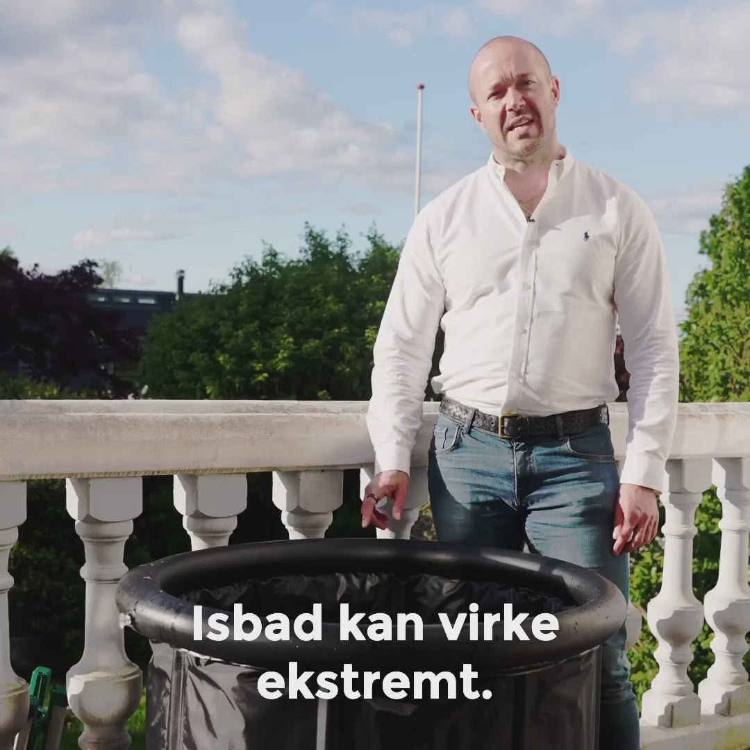 Der medfølger en stor frysepose, som du kan fylde med vand og fryse ned, så vandet er ekstra koldt i dit isbad. Dermed sparer du også penge på isterninger!